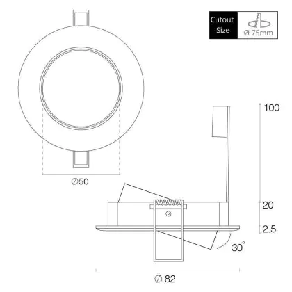 Descrizione Any Lamp Incasso Spot Circolare Inclinabile Bianca | Ritaglio 75mm - GU5.3 Attacco