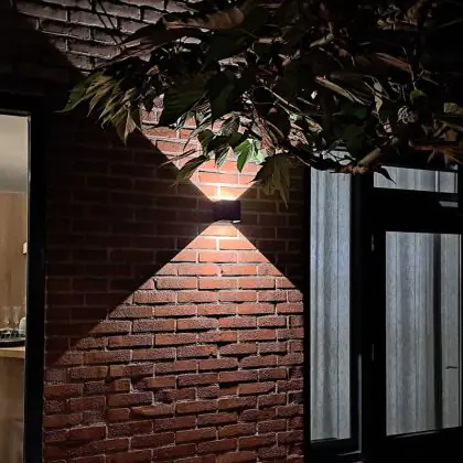 - Emissione luminosa: Luce bianca calda (3000K) con fascio doppio verso l’alto e verso il basso per un effetto architettonico.