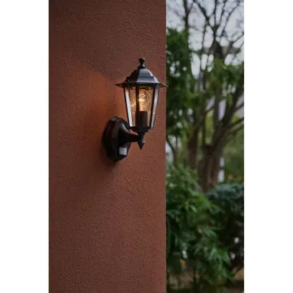 Descrizione D'Lite Luce Da Parete Helora Nero | IP44 - Adatto per 1x E27 - Sensore Di Movimento