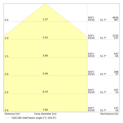 L'apertura del fascio luminoso indica l'angolo del fascio di luce proveniente da una lampada o lampadina. Si misura in gradi (D) e più piccolo è l'angolo, più piccola è l'apertura del fascio di luce.