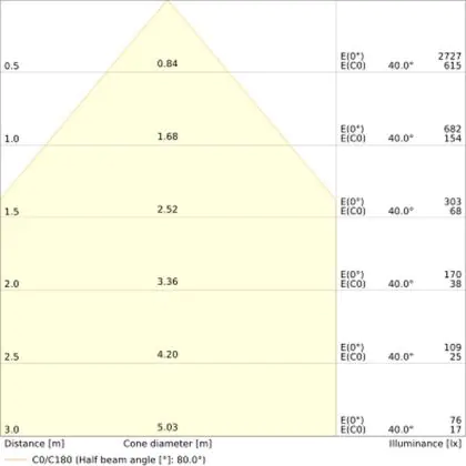 Il codice colore è una combinazione di resa cromatica (CRI) e colore della luce (Kelvin). La prima cifra indica la resa cromatica (1 = resa del colore molto bassa, 9 = massima resa del colore), mentre la seconda e la terza si riferiscono al colore della luce. Esempio: il codice colore 830 indica una buona resa cromatica (8) e luce bianca calda (3000K). |