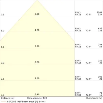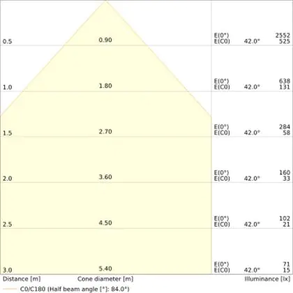 Il codice colore è una combinazione di resa cromatica (CRI) e colore della luce (Kelvin). La prima cifra indica la resa cromatica (1 = resa del colore molto bassa, 9 = massima resa del colore), mentre la seconda e la terza si riferiscono al colore della luce. Esempio: il codice colore 830 indica una buona resa cromatica (8) e luce bianca calda (3000K). |