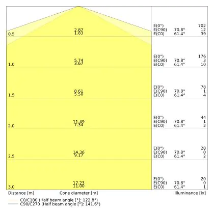 Il codice colore è una combinazione di resa cromatica (CRI) e colore della luce (Kelvin). La prima cifra indica la resa cromatica (1 = resa del colore molto bassa, 9 = massima resa del colore), mentre la seconda e la terza si riferiscono al colore della luce. Esempio: il codice colore 830 indica una buona resa cromatica (8) e luce bianca calda (3000K). |