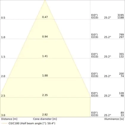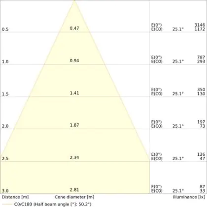 L'apertura del fascio luminoso indica l'angolo del fascio di luce proveniente da una lampada o lampadina. Si misura in gradi (D) e più piccolo è l'angolo, più piccola è l'apertura del fascio di luce.