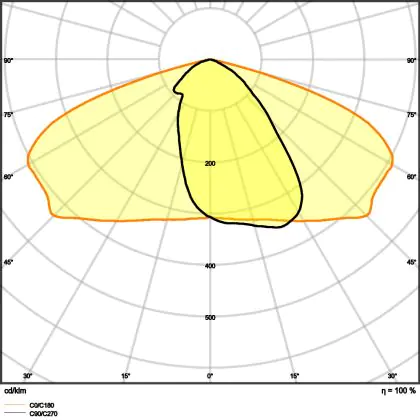 L'alloggiamento impermeabile di questa sorgente luminosa non è l'unica ragione per cui è perfetta per l'uso all'aperto. Infatti bisogna considerare anche la distribuzione della luce di questa lampada stradale, che ha apertura del fascio luminoso di 25x145° ed emette luce di colore 4000K - Bianco Freddo.