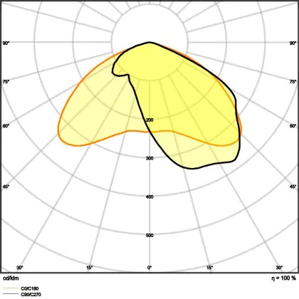 L'alloggiamento impermeabile di questa sorgente luminosa non è l'unica ragione per cui è perfetta per l'uso all'aperto. Infatti bisogna considerare anche la distribuzione della luce di questa lampada stradale, che ha apertura del fascio luminoso di 35x135° ed emette luce di colore 3000K - Luce Calda.