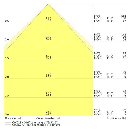 Il codice colore è una combinazione di resa cromatica (CRI) e colore della luce (Kelvin). La prima cifra indica la resa cromatica (1 = resa del colore molto bassa, 9 = massima resa del colore), mentre la seconda e la terza si riferiscono al colore della luce. Esempio: il codice colore 830 indica una buona resa cromatica (8) e luce bianca calda (3000K). |