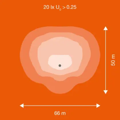 Questo apparecchio può essere usato sia in spazi interni che in spazi esterni, poiché ha indice di protezione contro l'ingresso di acqua e polvere IP66. In generale, un apparecchio con IP44 è resistente a schizzi di acqua e umidità, e può quindi essere installato in spazi esterni molto umidi o esterni riparati, come sono una tettoia. Un apparecchio che invece verrà esposto a intensi getti di acqua deve avere almeno IP54. Questa lampada ha anche un indice di resistenza a urti e impatti di IK08 - 5 Joule.