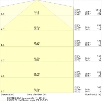 Il codice colore è una combinazione di resa cromatica (CRI) e colore della luce (Kelvin). La prima cifra indica la resa cromatica (1 = resa del colore molto bassa, 9 = massima resa del colore), mentre la seconda e la terza si riferiscono al colore della luce. Esempio: il codice colore 830 indica una buona resa cromatica (8) e luce bianca calda (3000K). |