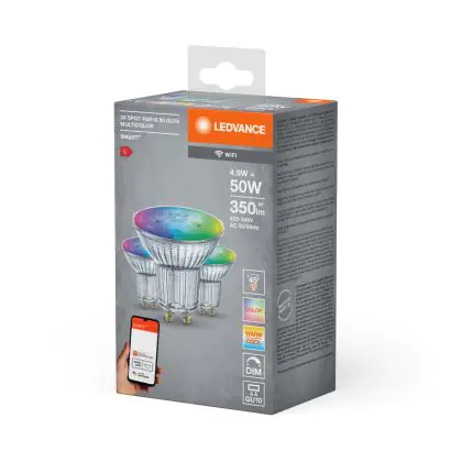 Ledvance Smart+ Wifi GU10 Spot 5W 350lm 45D - 827-865 Regolabile Bianca | RGBW - Dimmerabile - Sostitutiva 50W