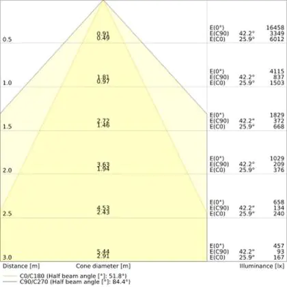 Il codice colore è una combinazione di resa cromatica (CRI) e colore della luce (Kelvin). La prima cifra indica la resa cromatica (1 = resa del colore molto bassa, 9 = massima resa del colore), mentre la seconda e la terza si riferiscono al colore della luce. Esempio: il codice colore 830 indica una buona resa cromatica (8) e luce bianca calda (3000K). |