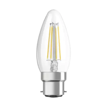 La Osram Classic LED B22d Candela Filamento Chiara 4W 470lm - 827 Bianco Molto Caldo | Sostitutiva 40W è la sostituzione perfetta per la tua lampada convenzionale 40W B22d. Sostituire con il LED ti offrirà molti vantaggi.