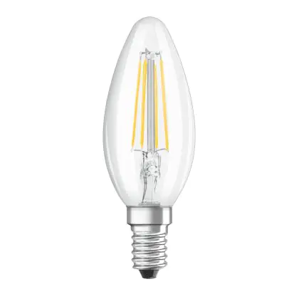 La lampada Osram Classic LED E14 Candela Filamento Chiara 4W 470lm - 827 Bianco Molto Caldo | 3 Step Dim - Sostitutiva 40W è il sostituto perfetto per le tue vecchie lampade 40W con attacco a vite piccolo E14 grazie alla sua tecnologia LED. Passare a LED ti offrirà molti vantaggi!
