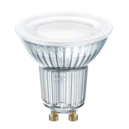 Osram Parathom Pro è un faretto LED efficiente con attacco GU10. Questa tipologia di attacco presenta una distanza di 10 mm tra i due pin all’estremità della sorgente luminosa.
