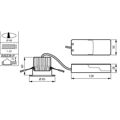 Descrizione Philips Faretti LED RS155B CoreLine Aluminium Bianca 7.2W 800lm 36D - 840 Bianco Freddo | 85mm - Ritaglio 68mm - IP20/65 - Dimmerabile