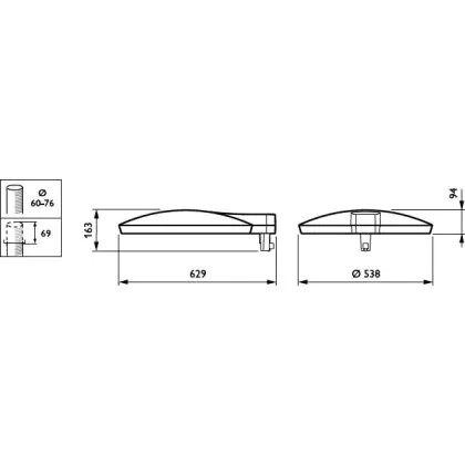 Se vuoi sostituire un vecchio apparecchio di illuminazione stradale scegli una nuova lampada LED. I LED hanno alta potenza luminosa e basso consumo energetico, come questo apparecchio che consuma solo 46.5 W. Ha un ciclo di vita di circa 100000 ore, che fa risparmiare anche sui costi di manutenzione e sostituzione.