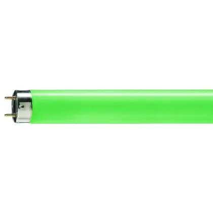 Questo tubo colorato Philips è lungo 59 cm, presenta un attacco G13 ed un diametro di 28 mm. Con un consumo di 18 W emette una luce verde brillante (1800 lm) a 360°.