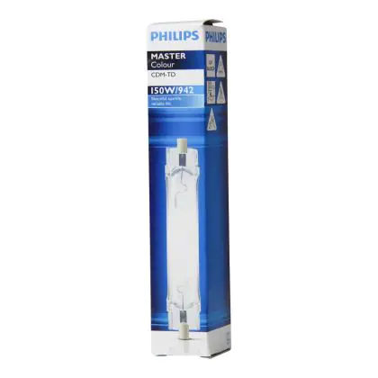 CDM-TD sono lampadine a scarica compatte a doppio attacco, con una luce brillante ed un'eccellente stabilità del colore. Le Philips CDM-TD 150W 942 RX7s (MASTEColour) in particolare, presentano le seguenti caratteristiche: