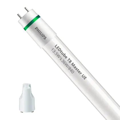 Il Philips Tubo LED T8 MASTER (EM/Mains) Ultra Efficiency 13.5W 2500lm - 840 Bianco Freddo | 120cm - Sostitutiva 36W è l’alternativa perfetta per il tubo fluorescente standard 36W nelle plafoniere con un reattore. Con questo tubo LED hai una garanzia di una vita media utile molto lunga e 5 anni Lampadadiretta.it di totale garanzia. .