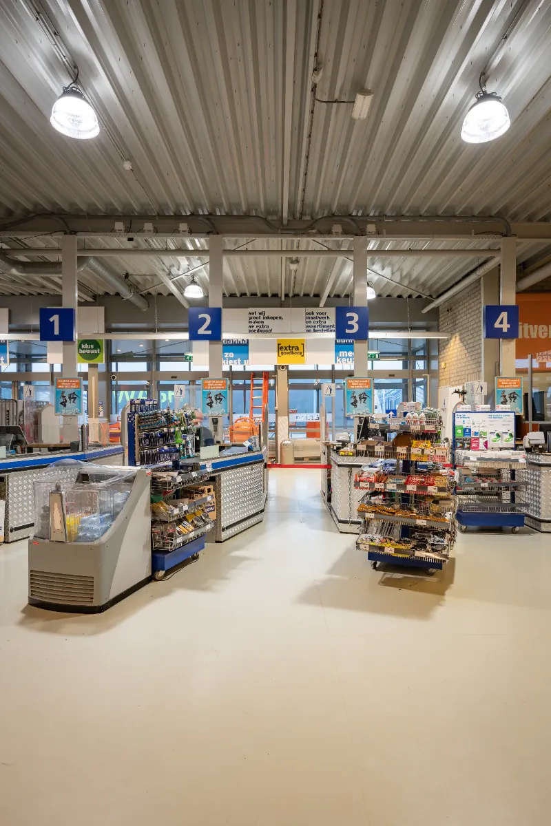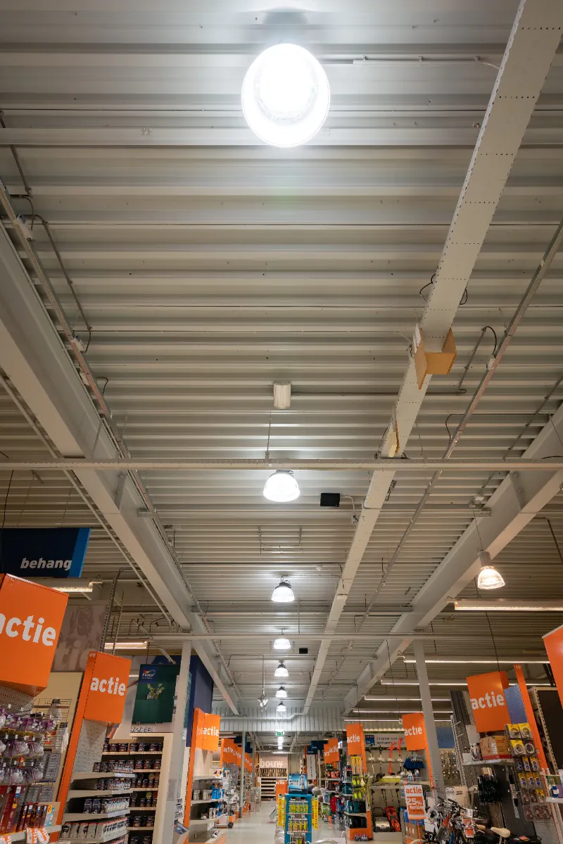 Con i nuovi apparecchi sostenibili Gamma raggiunge il suo obiettivo di efficienza energetica e risponde ai desideri dei clienti. Le vecchie lampade highbay convenzionali consumavano 400W, mentre i nuovi highbay LED ne consumano solo 200W. In questo modo Gamma risparmia fino al 50% di energia! Inoltre, poiché l'illuminazione a LED ha una durata garantita di 100.000 ore, anche i costi di manutenzione e sostituzione sono stati ridotti. In questo modo siamo riusciti a creare una soluzione di illuminazione sostenibile ed efficiente dal punto di vista energetico, che conferisce al negozio un aspetto gradevole. Sei curioso/a di vedere il risultato? Dai un'occhiata alle foto qui sotto.